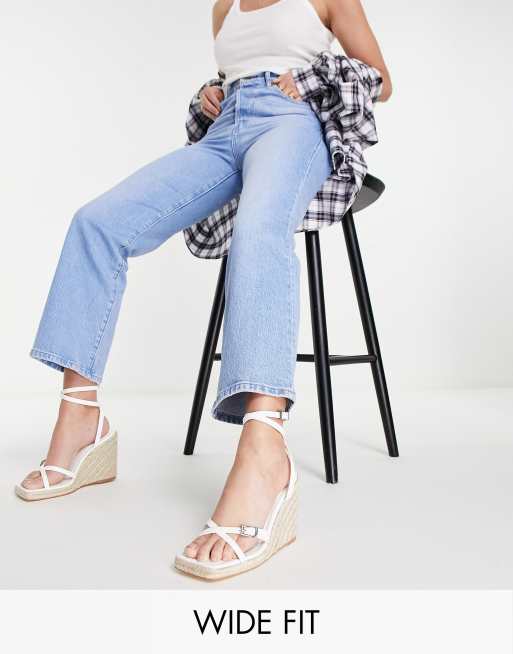 Topshop Wide Fit Wilma high espadrille wedge in white