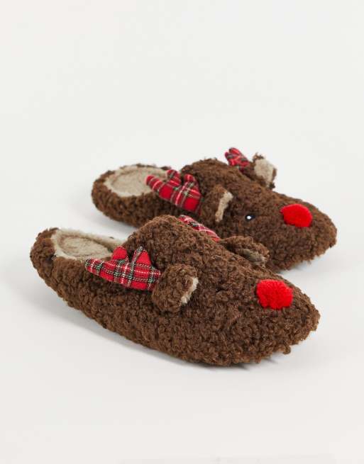 Totes christmas reindeer slipper in brown