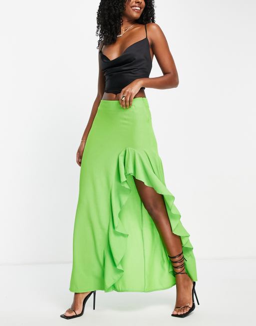 Trendyol maxi skirt with ruffle split in lime green