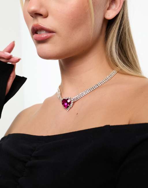 True Decadence chunky embellished heart pendant necklace in hot pink