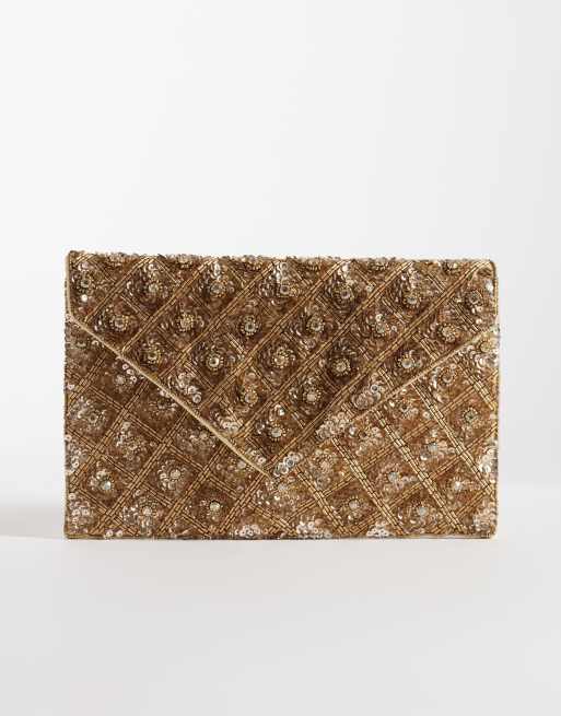 True Decadence embellished envelope clutch bag in gold