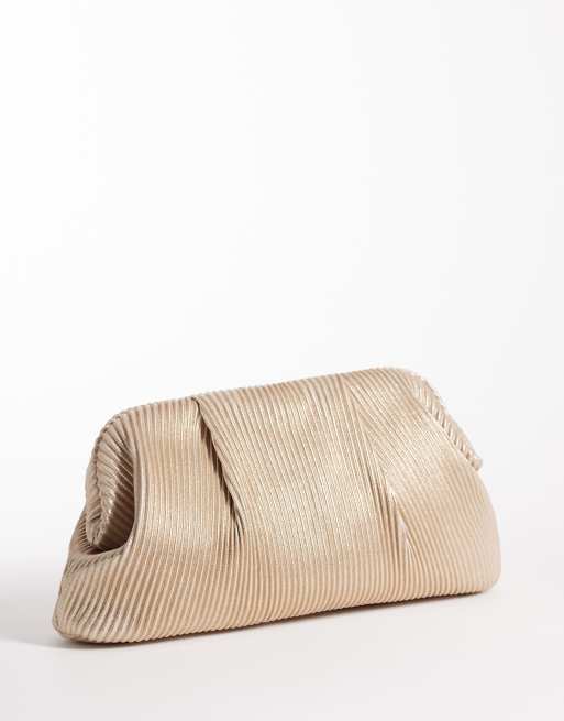 True Decadence pleated pillow clutch bag with crossbody strap in gold