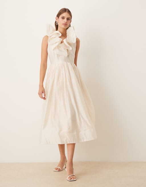 True Decadence Ruffle midi dress in cream