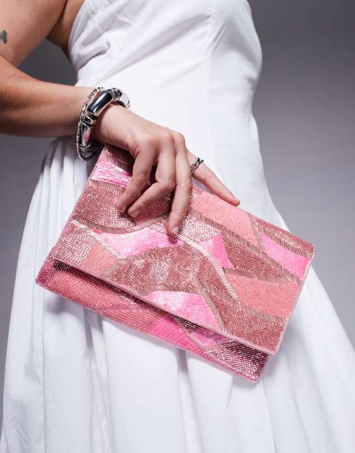 True Decadence sequin pattern envelope clutch bag in pink
