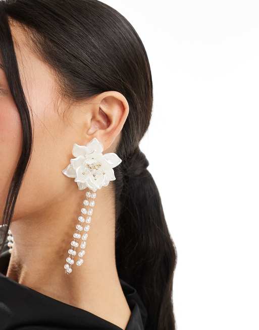 True Decadence statement pearl flower earrings in white