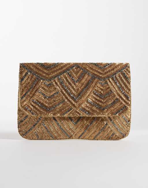 True Decadence stripe embellished clutch bag in gold