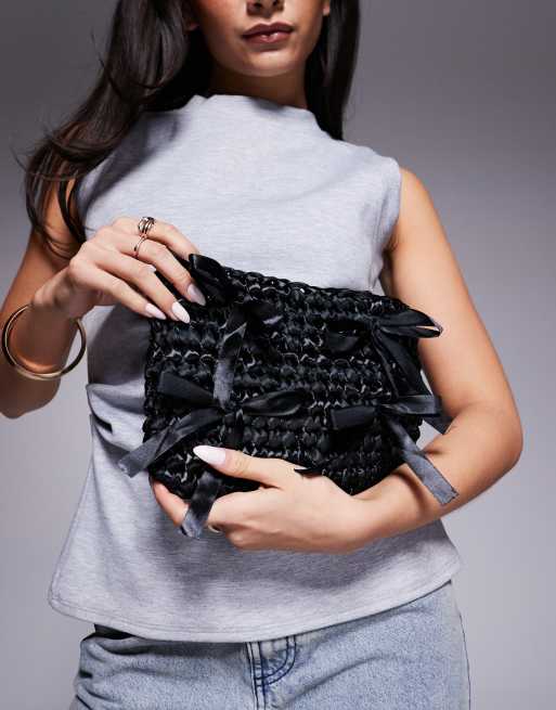 True Decadence woven bow mini bag in black