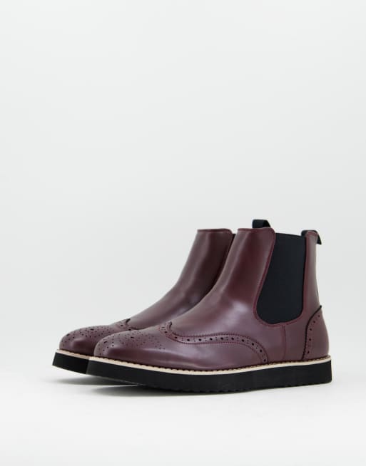 Truffle Collection chelsea boots in burgundy faux leather