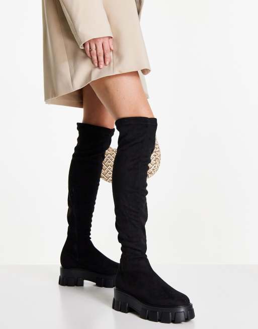 Truffle Collection chunky pull on over the knee boots in black