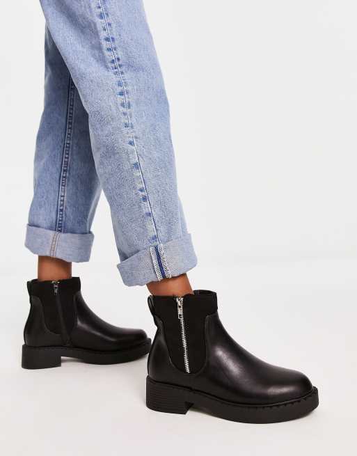 Truffle Collection chunky side zip ankle boots in black