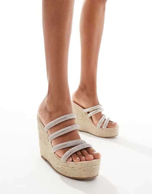 Truffle Collection cork wedge heeled sandals in silver