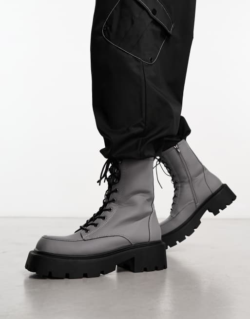 Truffle Collection square toe chunky lace up boots in grey