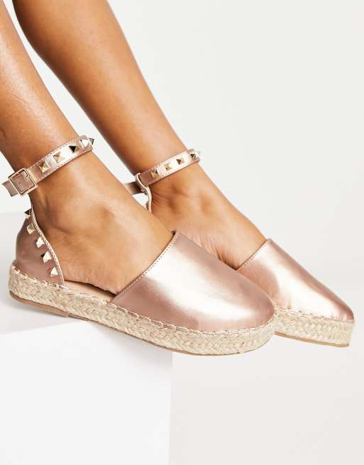 Truffle Collection studded ankle strap espadrilles in rose gold