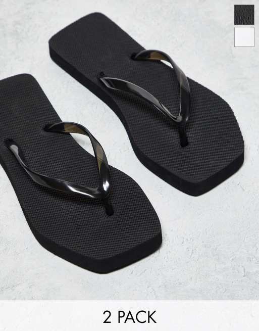 Truffle Collection Wide Fit 2 pack square toe flip flops in black and white