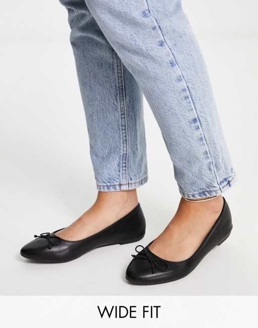 Truffle Collection wide fit easy ballet flats in black