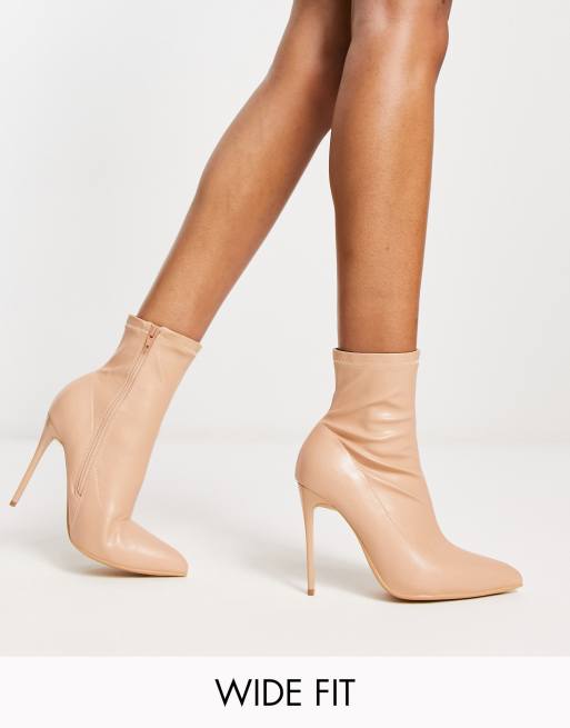Truffle Collection Wide Fit stiletto heeled sock boots in taupe