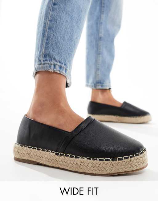 Truffle Collection wide fit stud detail espadrille in black