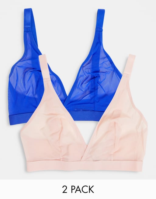 Tutti Rougette Fuller Bust 2 pack mesh triangle bralette in cobalt and blush - MULTI