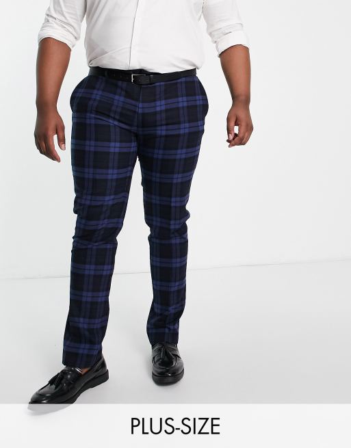 Twisted Tailor Plus suit trousers in navy tonal check