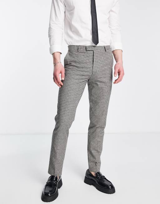 Twisted Tailor pudwill slim fit suit trousers in beige and navy micro check