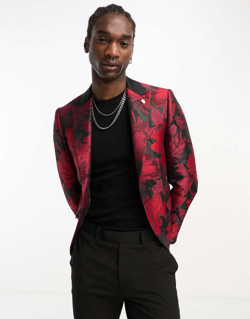 Twisted Tailor redmon floral suit jacket in red