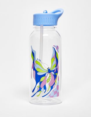 Typo water bottle in clear with butterly slogan print