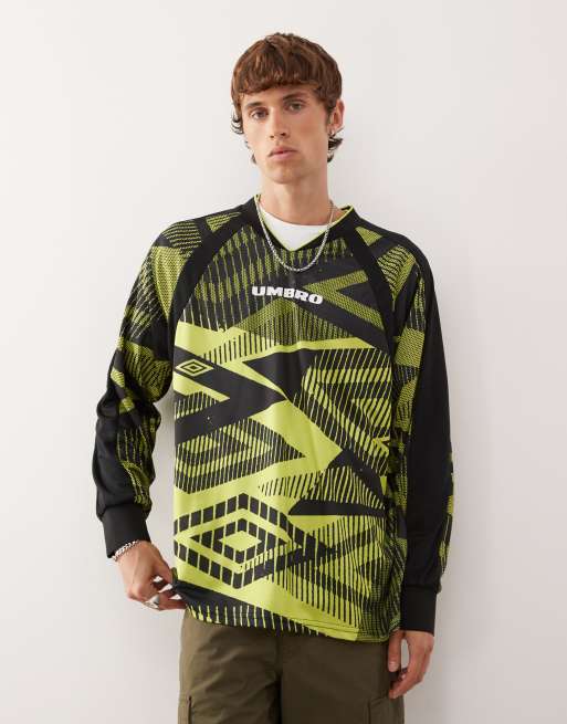 Umbro printed long sleeve jersey in green and black