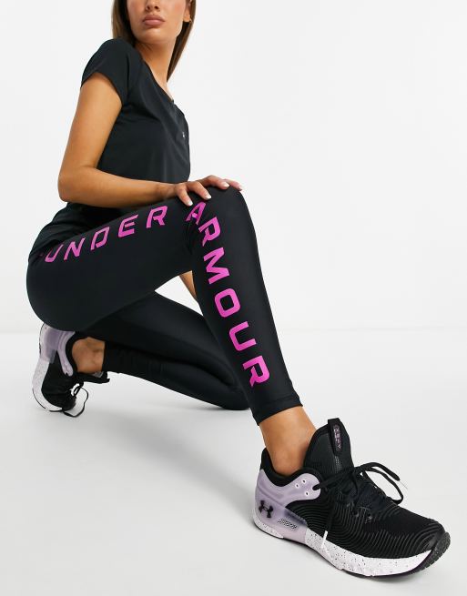 Under Armour Training Heatgear branded leg leggings in black and pink