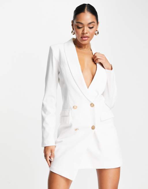 Unique21 double breasted asymetric blazer dress in white