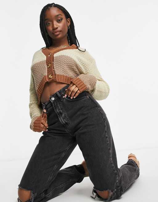 Unique21 tonal colourblock cardigan in brown & caramel