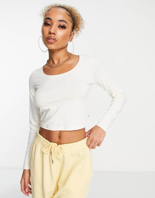 Urban Classics cropped long sleeve scoop neck t-shirt in white