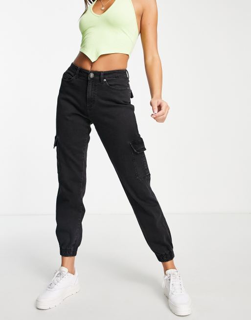 Urban Classics denim cargo trousers in washed black