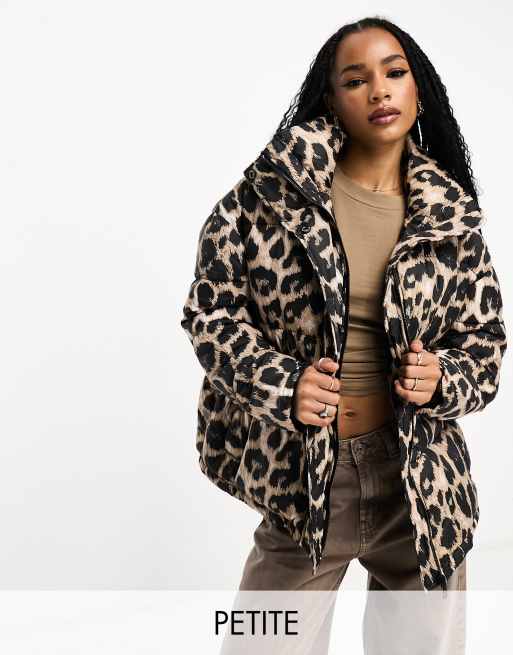 Urban Code Petite oversized puffer jacket in leopard print