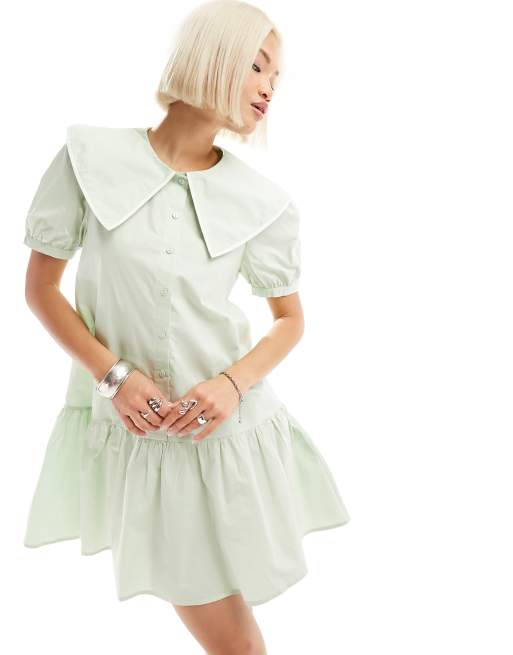 Urban Revivo button up mini smock dress with oversized collar in light green