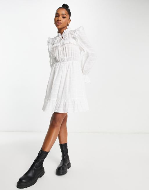 Urban Revivo frill shoulder high neck mini dress in off white
