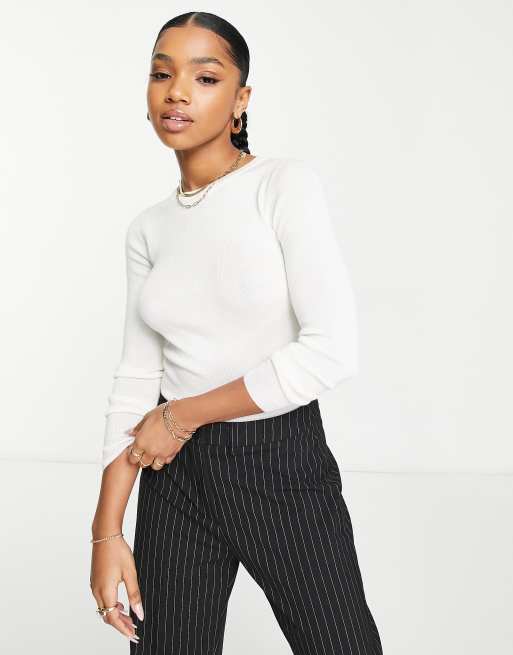 Urban Revivo long sleeve fine knit top in off white