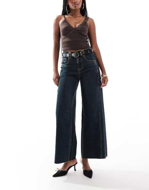 Urban Revivo washed wide leg jeans in blue green