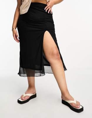 Urban Threads Plus mesh midaxi skirt with lettuce hem in black