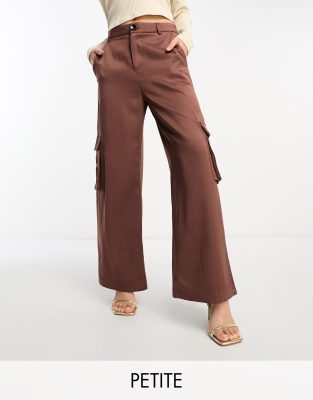 Urban Threads Petite wide leg cargo trousers in chocolate brown