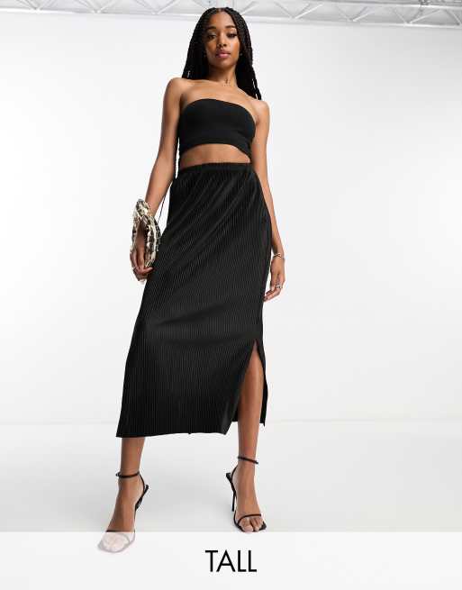 Urban Threads Tall plisse midi skirt in black