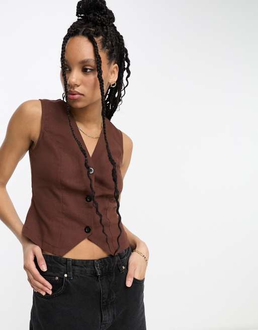 Urban Threads linen blend waistcoat co-ord in chocolate brown