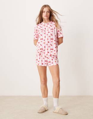 Urban Threads short sleeve t-shirt and short pyjama set inlove heart berry stripe print