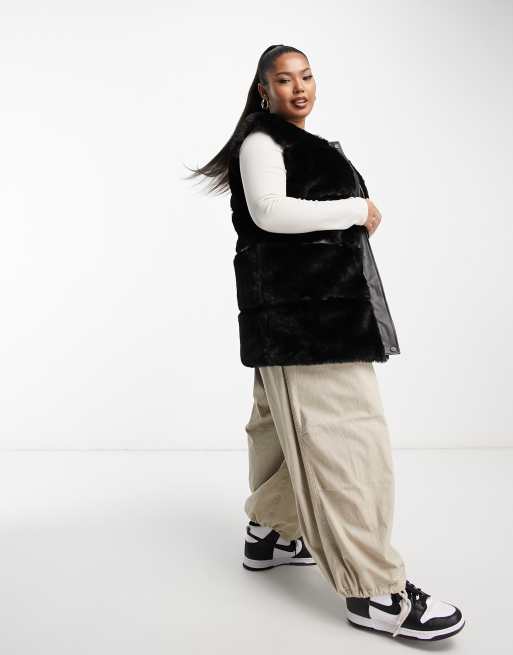 Urban Code Plus faux fur longline gilet with faux leather panels in black