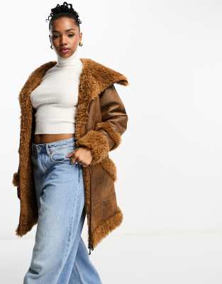 Urabncode oversized aviator jacket with borg trims in honey
