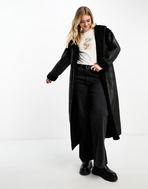 Urbancode maxi aviator coat in black