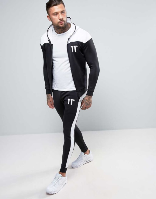 11 Degrees Hoodie And Skinny Sweatpants In Black Poly