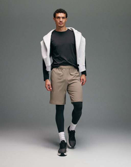 4505 10 inch loose fit quick dry training shorts with zip pockets in sandstone