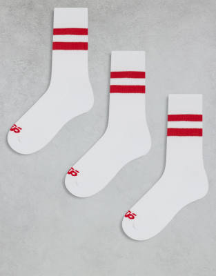 4505 3 pack 2 stripe crew socks with quick dry in white with red stripe