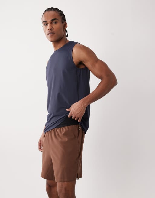 4505 5" running shorts with elastic waistband and mesh back pocket in brown