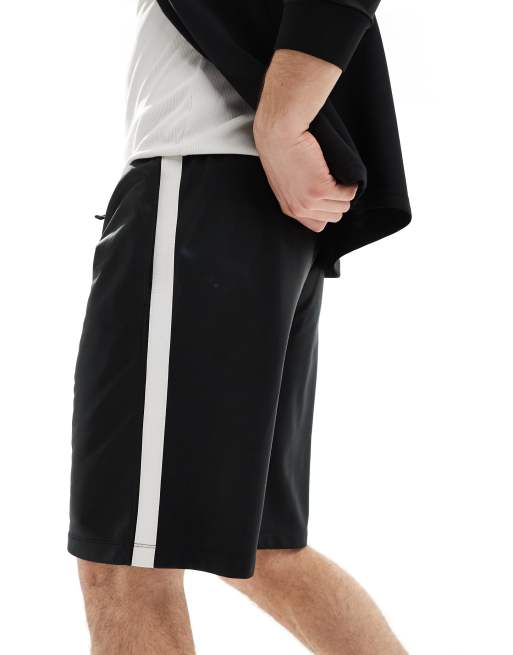 4505 contrast side stripe active jersey shorts in black & white